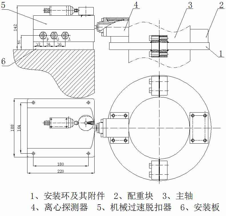 JXB 型純機械液壓過速保護裝置是融合國內(nèi)外同類產(chǎn)品的優(yōu)點,結(jié)合水電站實際情況優(yōu)化設(shè)計、自主開發(fā)的高新技術(shù)產(chǎn)品。它主要由過速探測器TCQ、過速保護器BHQ、配重裝置等組成,是大型旋轉(zhuǎn)設(shè)備的純機械無源過速保護裝置,可用作水輪發(fā)電機組的過速保護。當(dāng)水輪機發(fā)電機組轉(zhuǎn)速升高到過速保護設(shè)定值,而此時水電站轉(zhuǎn)速信號裝置或電源系統(tǒng)以及調(diào)速系統(tǒng)發(fā)生故障,無法實現(xiàn)水輪發(fā)電機組的調(diào)速和停機,JYSZ 型純機械液壓過速保護裝置利用油壓裝置(液壓蓄能裝置)的油源切換油路,通過過速保護器BHQ控制液壓系統(tǒng),從而實現(xiàn)關(guān)閉軸流、混流、貫流式水輪發(fā)電機組導(dǎo)葉機構(gòu)或沖擊式水輪發(fā)電機組的折向器,實現(xiàn)機組停機,防止機組發(fā)生飛逸事故,確保水輪發(fā)電機的安全運行。