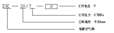 DK-20型電磁空氣閥,用于水輪發(fā)電機(jī)組轉(zhuǎn)速下降到額定轉(zhuǎn)速的35~40%時(shí),接受轉(zhuǎn)速信號(hào)來(lái)的電氣信號(hào),使空氣制動(dòng)閥動(dòng)作對(duì)機(jī)組進(jìn)行制動(dòng),完成機(jī)組停機(jī)動(dòng)作。